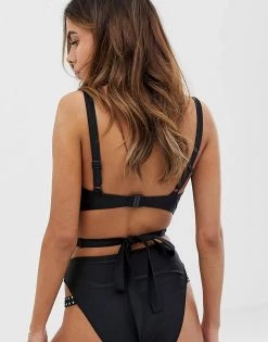 Wolf & Whistle Fuller Bust Exclusive Cut Out Crop Bikini Top With Belt Detail In Black For Women