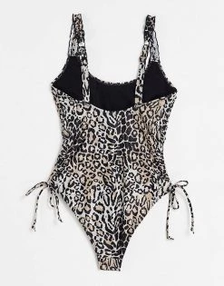 Wolf & Whistle Fuller Bust Exclusive Ruched High Leg Swimsuit In Leopard Print D-F For Women