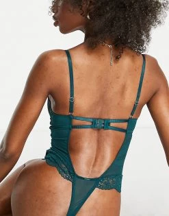 Wolf & Whistle Fuller Bust Sheer Mesh And Lace Body In Teal For Women