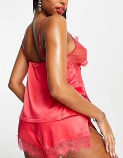 Wolf & Whistle Fuller Bust Satin Cami Top And Short Set In Red For Women
