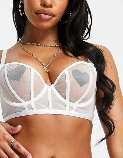 Wolf & Whistle Fuller Bust Mesh Lingerie Set With Satin Binding In White