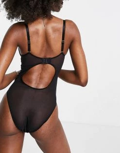 Wolf & Whistle Fuller Bust Mesh Body With Satin Binding In Black For Women