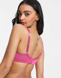 Wolf & Whistle Fuller Bust Sheer Spot Mesh Bra With Strapping Detail In Fuschia For Women