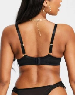 Wolf & Whistle Fuller Bust Mesh Lace Underwired Bra With Racer Back In Black For Women