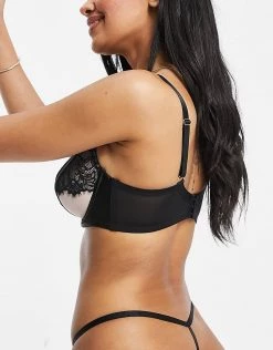 Wolf & Whistle Sheer Floral Mesh Tanga Thong In Black For Women