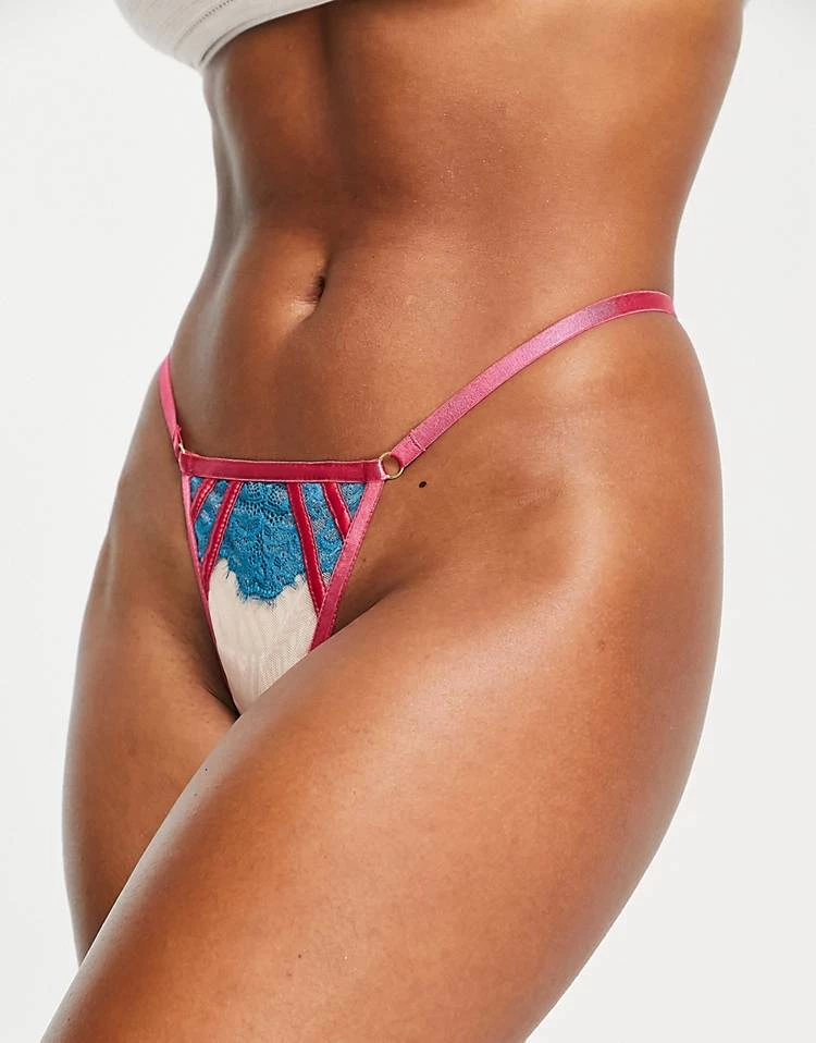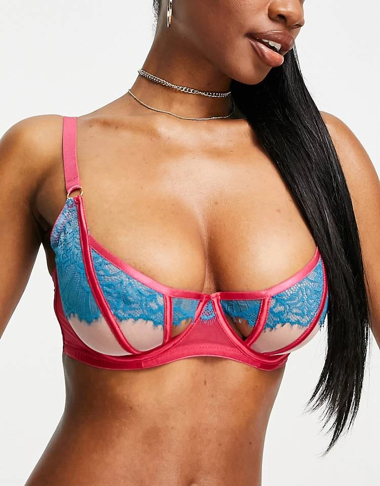 Wolf & Whistle Contrast Lace Lingerie Set In Pink And Turquoise