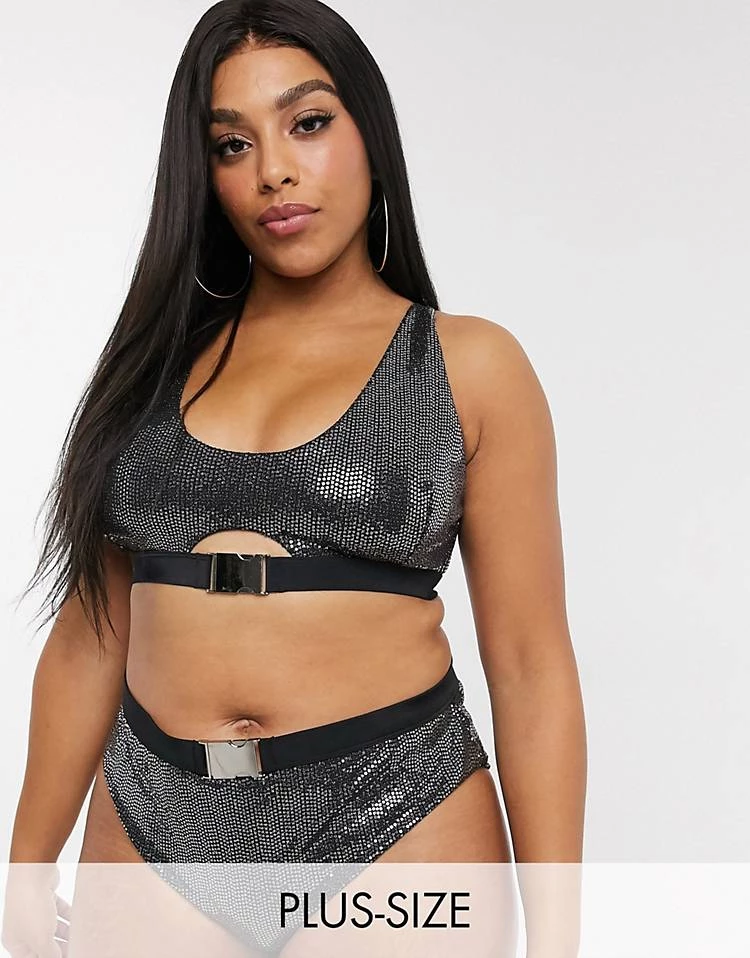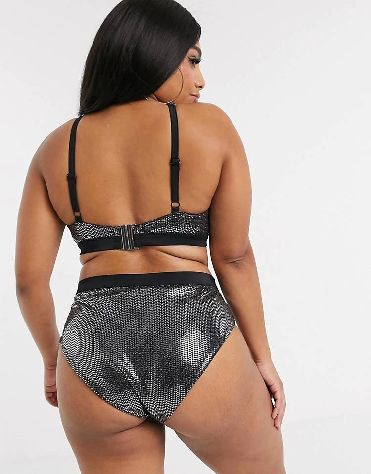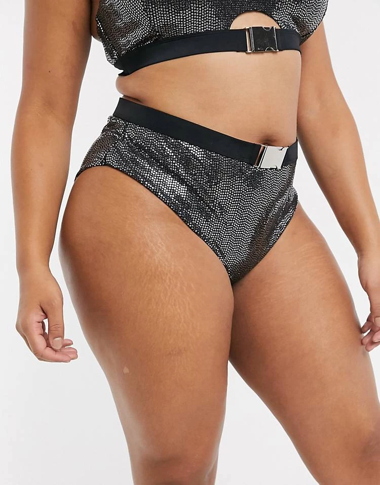 Gusset Liner: 100% Polyester, Lining 1: 77% Nylon, 23% Elastane, Main: 75% Polyester, 20% Metallised Fibres, 5% Elastane.