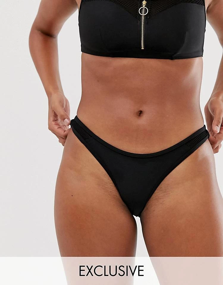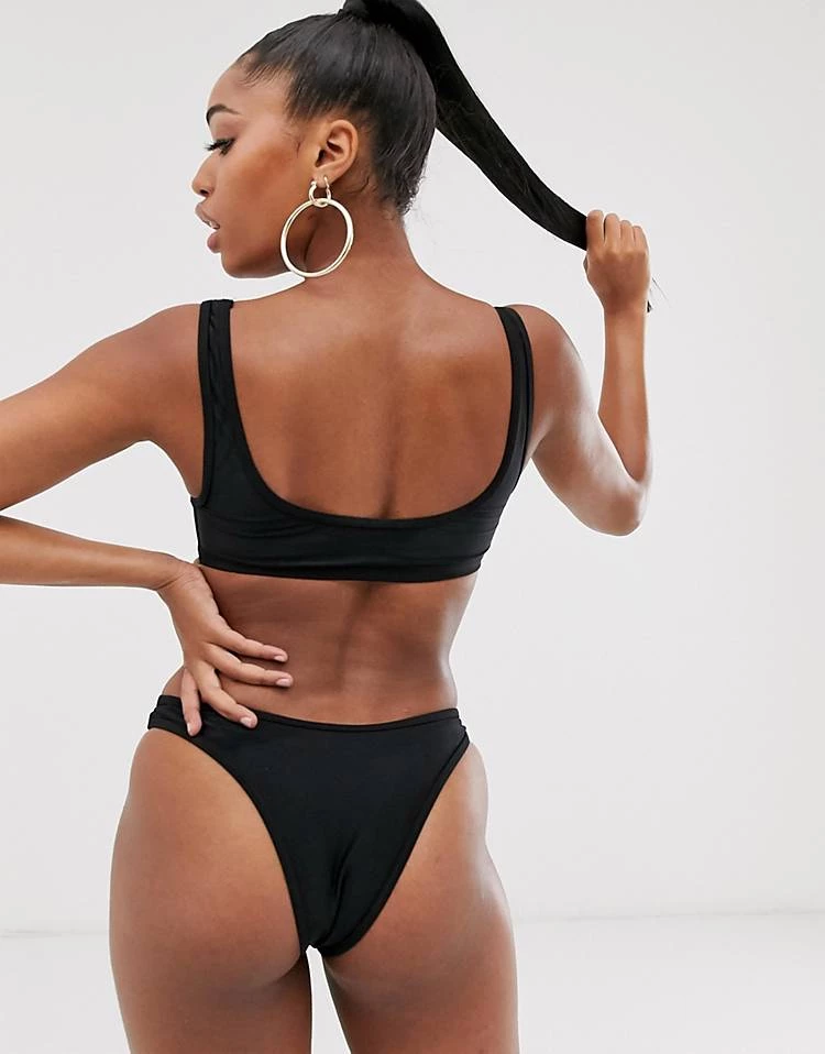 Wolf & Whistle Fuller Bust Exclusive Underwire Push Up Bikini Long Line Top In Black Rib For Women