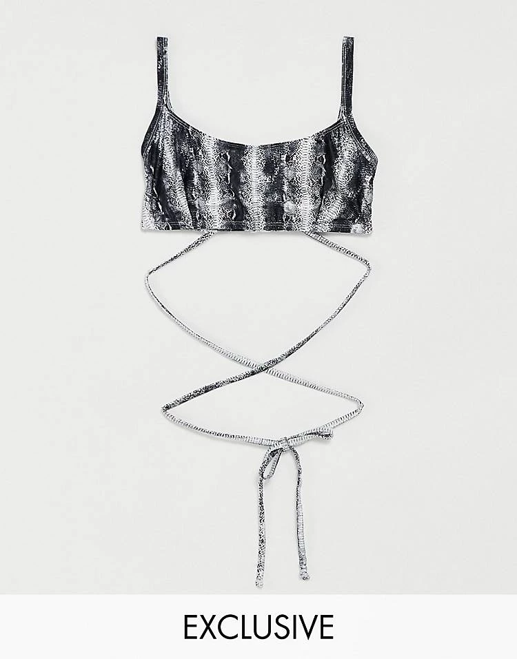 Wolf & Whistle Exclusive Fuller Bust Wrap Bikini Set In High Shine Snake