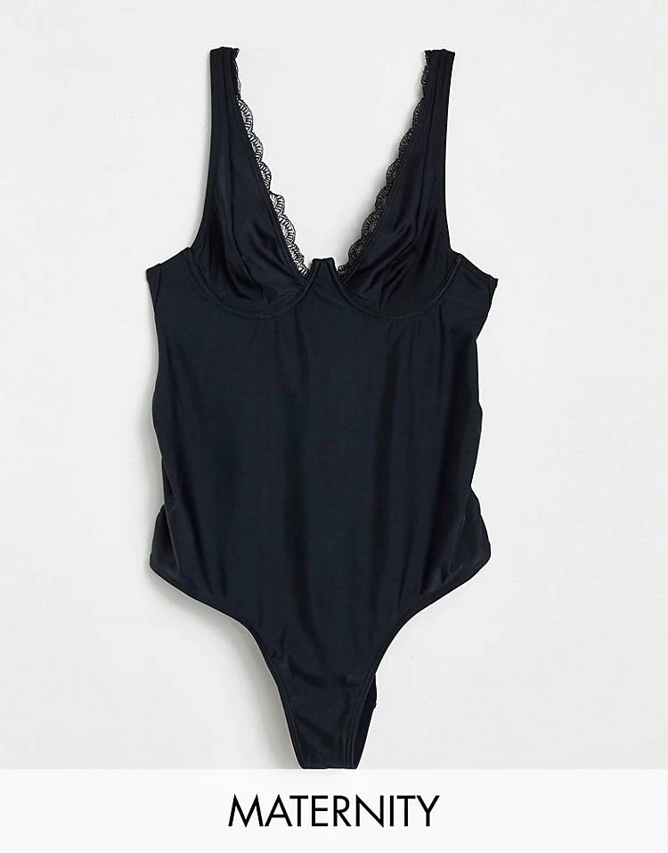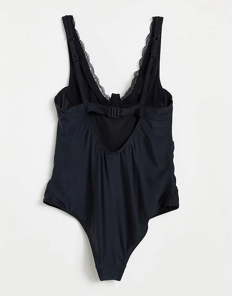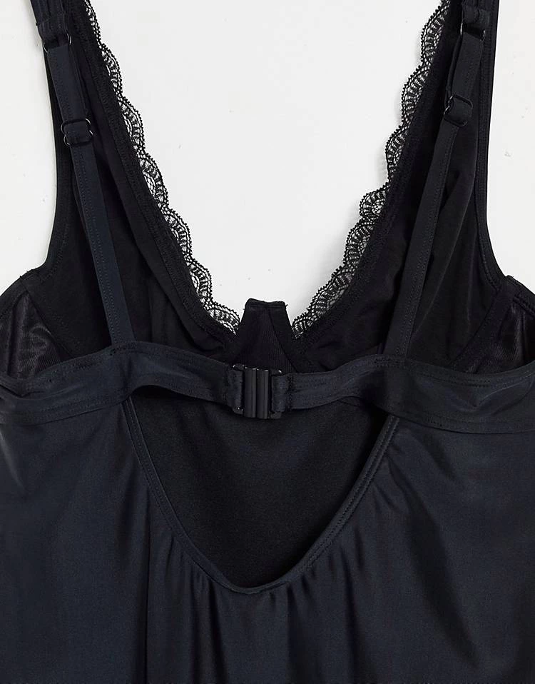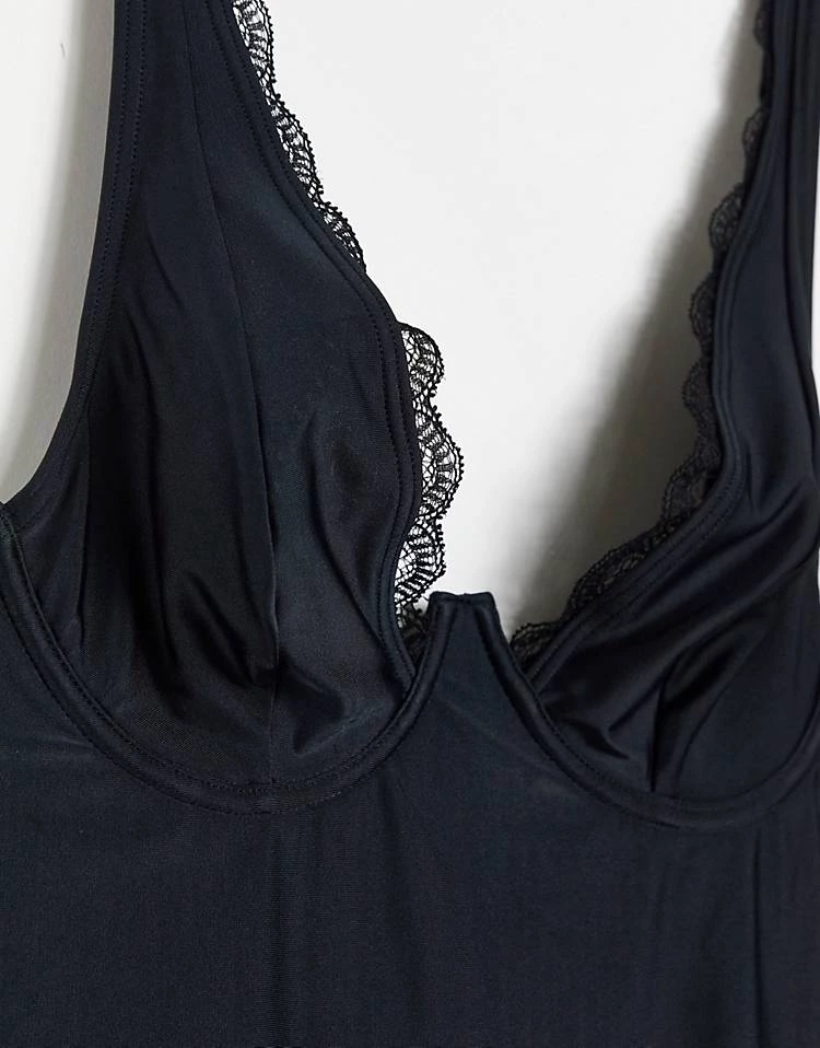 Wolf & Whistle Fuller Bust Exclusive Underwire Push Up Bikini Long Line Top In Black Rib For Women